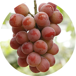 「ピオーネ」が生まれたのは、実は静岡県。巨峰とカノンホール・マスカットを交配し育成しました。あふれる果汁と上品で豊かな香り、そして大きな粒など、それぞれの特長を上手に受け継いでいます。色は濃い紫色、濃厚で甘みも強く、長年にわたりたくさんのファンを持つぶどうです。